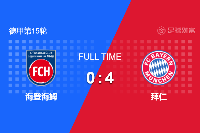 最终全场比赛结束,拜仁客场4-0轻取海登海姆。