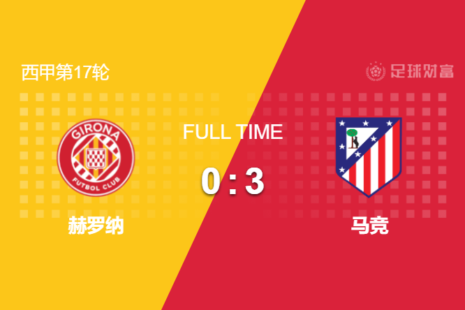 最终全场比赛结束,马竞客场3-0大胜赫罗纳,升至积分榜第3位。