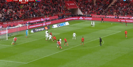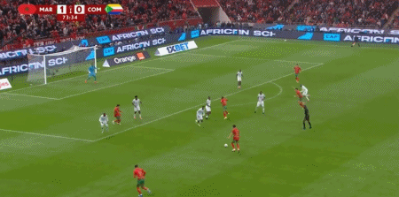 第74分钟,摩洛哥锁定胜局!萨拉赫·埃丁禁区前沿吊传,卡埃比精彩倒钩破网,2-0!!