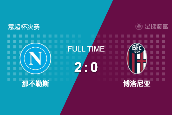 最终全场比赛结束,那不勒斯2-1击败博洛尼亚夺得意超杯冠军。