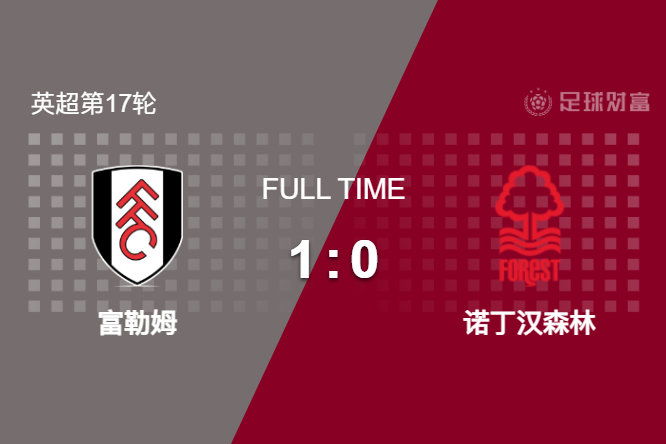 最终全场比赛结束,富勒姆1-0诺丁汉森林。