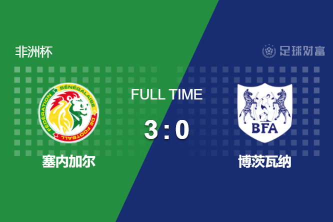 最终全场比赛结束,塞内加尔3-0大胜博茨瓦纳。