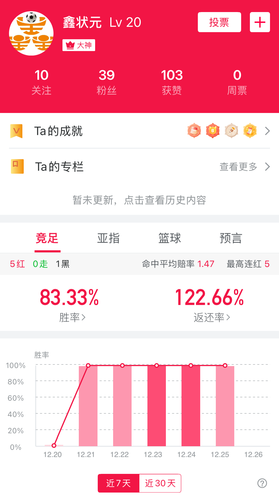 用户鑫状元 竞足目前5连红,近10中9状态不俗,今晚看好曼联主场不败,可供参考。
