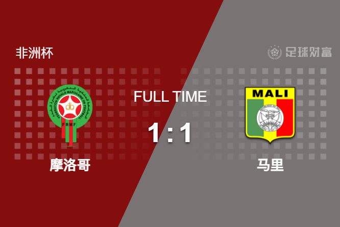最终全场比赛结束,摩洛哥1-1战平马里。