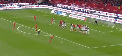 第6分钟,迪亚斯主罚任意球直接打门高出横梁。