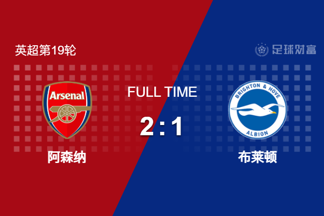 最终全场比赛结束,阿森纳2-1战胜布莱顿。