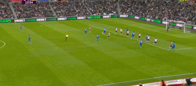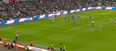第45+3分钟,阿丁格拉左侧突破传中,布罗贝伊头球砸在横梁弹出。