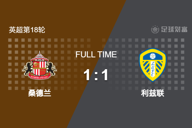 最终全场比赛结束,桑德兰主场1-1战平利兹联。