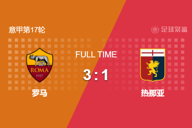 最终全场比赛结束,罗马主场3-1击败热那亚,升至积分榜第4位。
