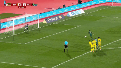 第82分钟,场上出现戏剧性转折!津巴布韦后卫门前故意手球送点,阿波利斯主罚点球命中,3-2!!