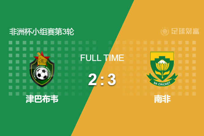 最终全场比赛结束,南非3-2绝杀津巴布韦,晋级淘汰赛。