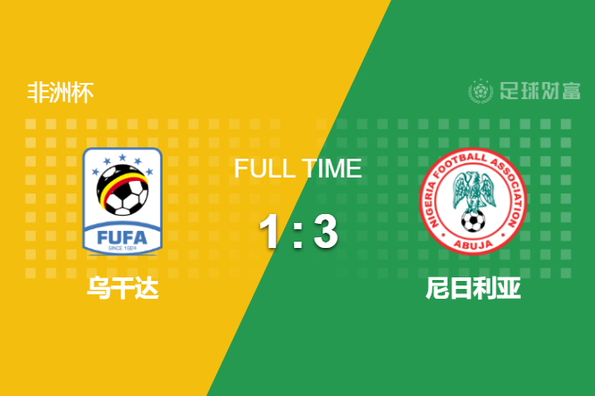 最终全场比赛结束,尼日利亚3-1击败乌干达,获得小组赛3连胜出线。