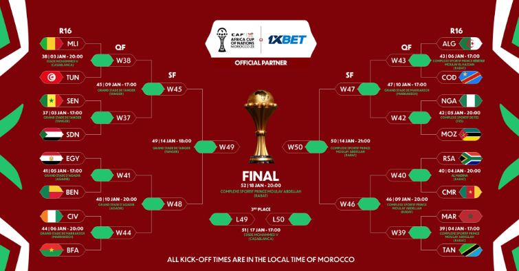 2026年非洲杯淘汰赛将在北京时间1月4日凌晨0点开战,决赛时间为1月19日凌晨3点。