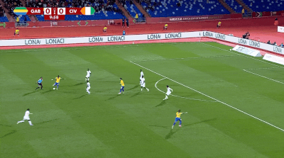 第21分钟,加蓬扩大领先!布安加后点接到队友传中球,右脚直接兜射右下角破网,2-0!!