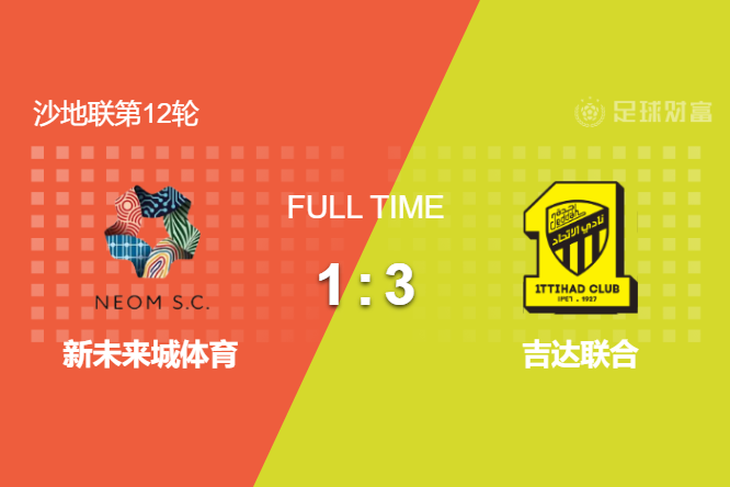 最终全场比赛结束,吉达联合客场3-1击败新未来城体育。