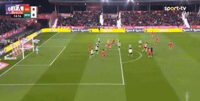 第82分钟,看着像进了!穆里略任意球击中人强后变向打在球门上方球网。