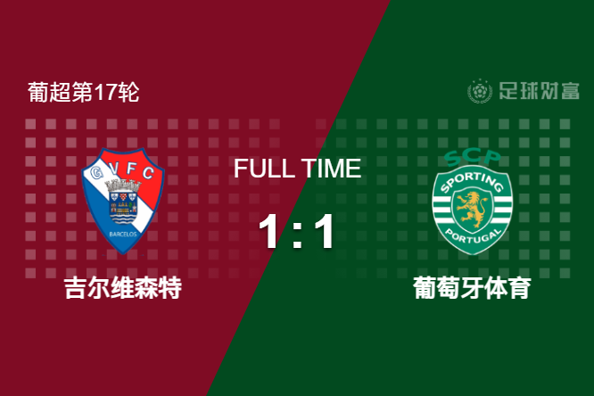 最终全场比赛结束,吉尔维森特主场1-1战平十人葡萄牙体育,吉尔维森特遭遇7轮不胜,近5轮全部战平。