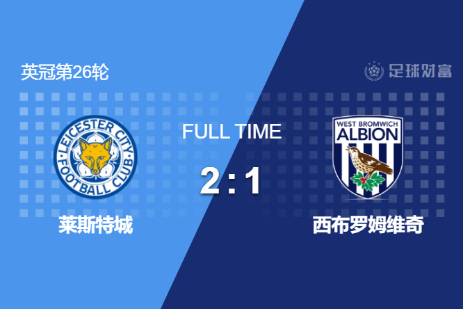 最终全场比赛结束,莱斯特城主场2-1击败西布朗,西布朗遭遇罕见的客场10连败。
