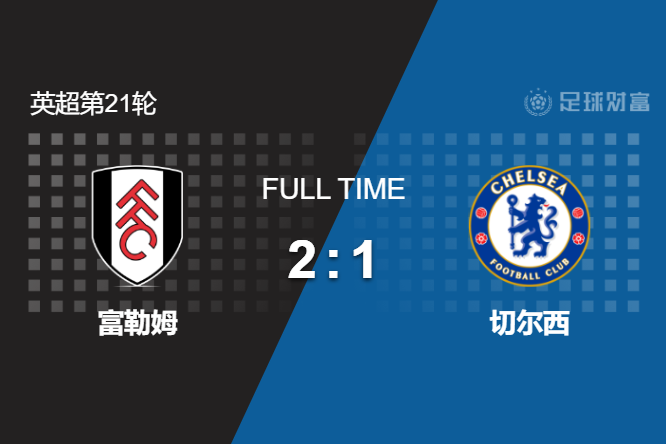 最终全场比赛结束,富勒姆主场2-1力克10人切尔西,蓝军连续5轮英超不胜。