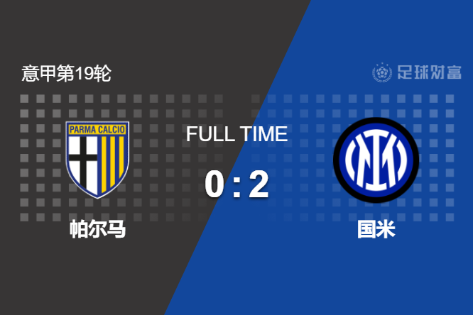最终全场比赛结束,国米2-0击败帕尔马继续领跑积分榜。