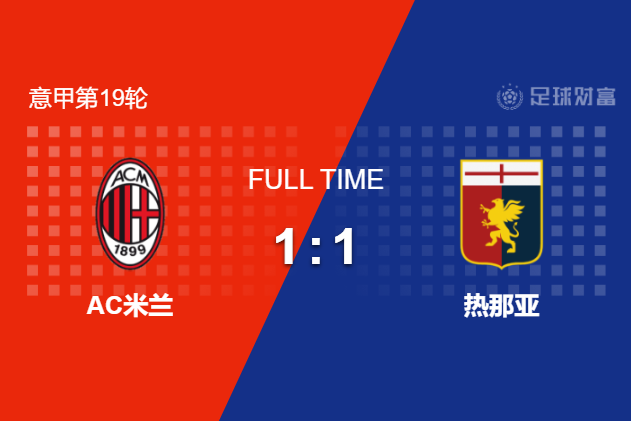 最终全场比赛结束,米兰1-1战平热那亚。