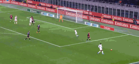 第38分钟,米兰错失良机!莱奥倒钩射门被挡出,后点的福法纳面对空门离奇滑倒!
