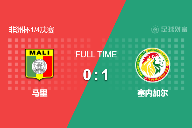 最终全场比赛结束,塞内加尔1-0淘汰马里晋级四强。