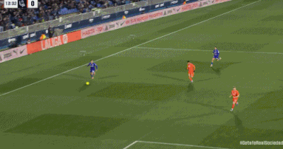第36分钟,皇家社会客场领先!布赖斯·门德斯禁区线上得球左脚凌空抽射入网,1-0!!