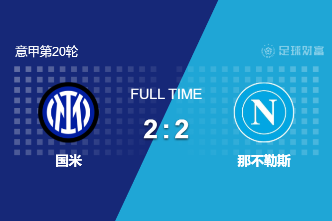 最终全场比赛结束,那不勒斯客场2-2绝平国际米兰。