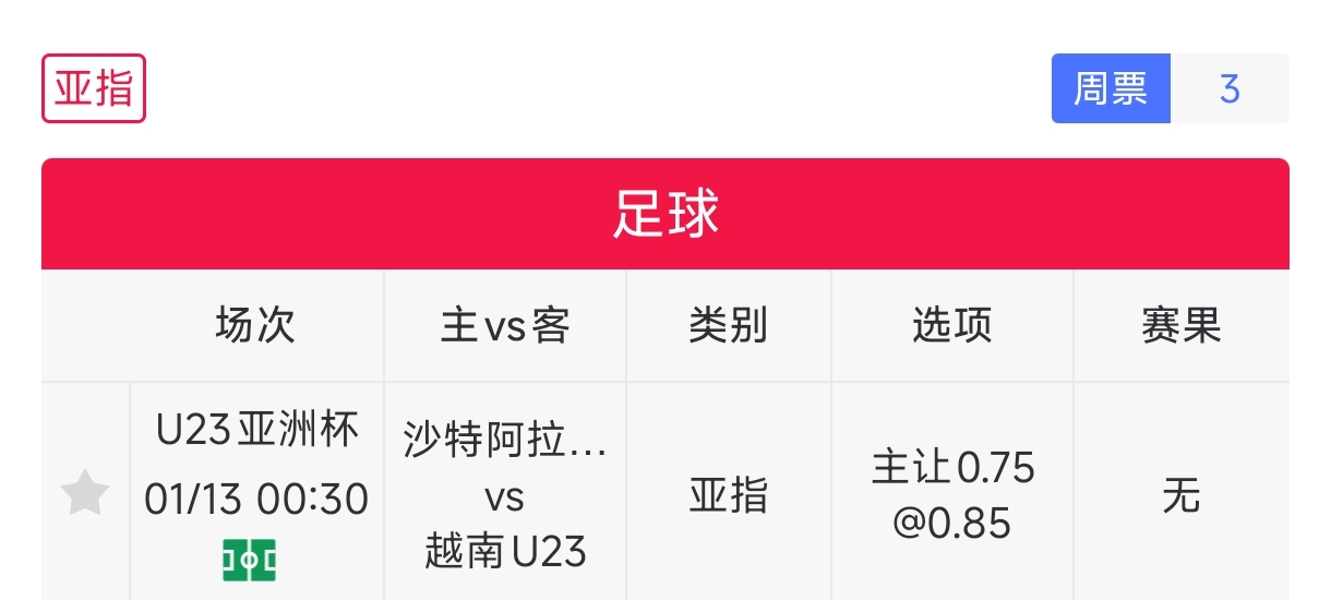 用户“胆宝 ”昨日成功命中德甲,亚指9中8,总体胜率81.82%,今天他再次公推U23亚洲杯生死战:沙特vs越南,沙特必须赢球才有望出线,感兴趣可以点击名字去看看他的分析。