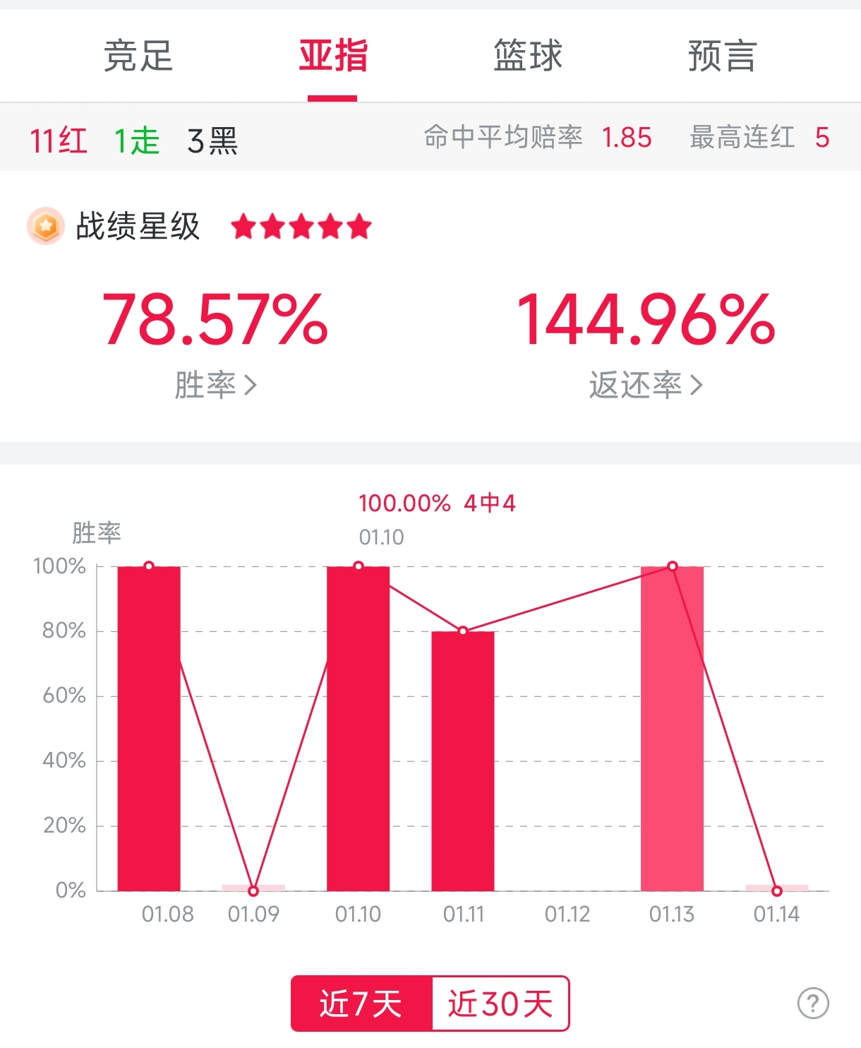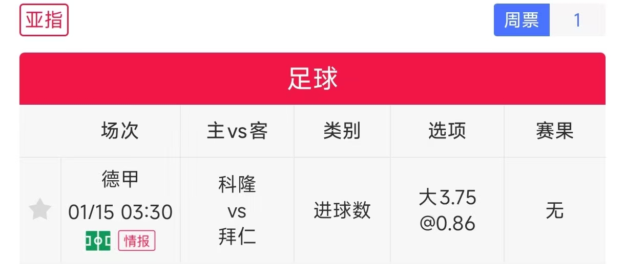 用户“初紫有乾坤 ”在刚刚公推一场德甲,关于科隆vs拜仁进球数参考。“初紫有乾坤 ”在长期以来状态都较为稳定,亚指近11中9,在近7天胜率78.57%,近30天胜率63.46%,他在1月10日和11日两天9中8,大家有兴趣可以看看。