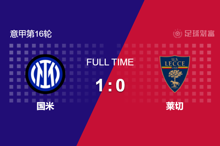 北京时间今日凌晨,意甲联赛第16轮一场比赛,国际米兰主场对阵莱切。