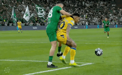 第15分钟,吉达国民开出右侧角球,伊万·托尼争顶撞倒对方球员犯规!