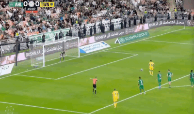 伤停补时阶段,场上出现争议一幕!穆法里禁区内解围踢到吉达国民球员,主裁判观看var后吹罚点球,伊万·托尼第104分钟主罚点球命中,此时伤停补时已经超时7分钟!!2-1!!