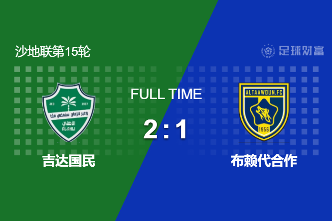 最终全场比赛结束,吉达国民2-1击败布赖代合作。