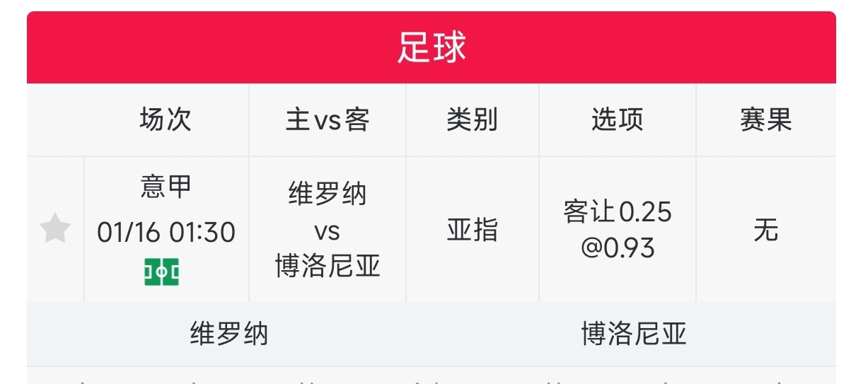 用户“库里小学生 ”在近期的状态不俗,在此前4天亚指9中8,胜率88.89%,返还率144.33%,今天他推荐了一场意甲联赛,感兴趣可以看一看。