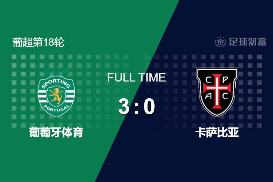 最终全场比赛结束,葡萄牙体育3-0击败卡萨比亚。