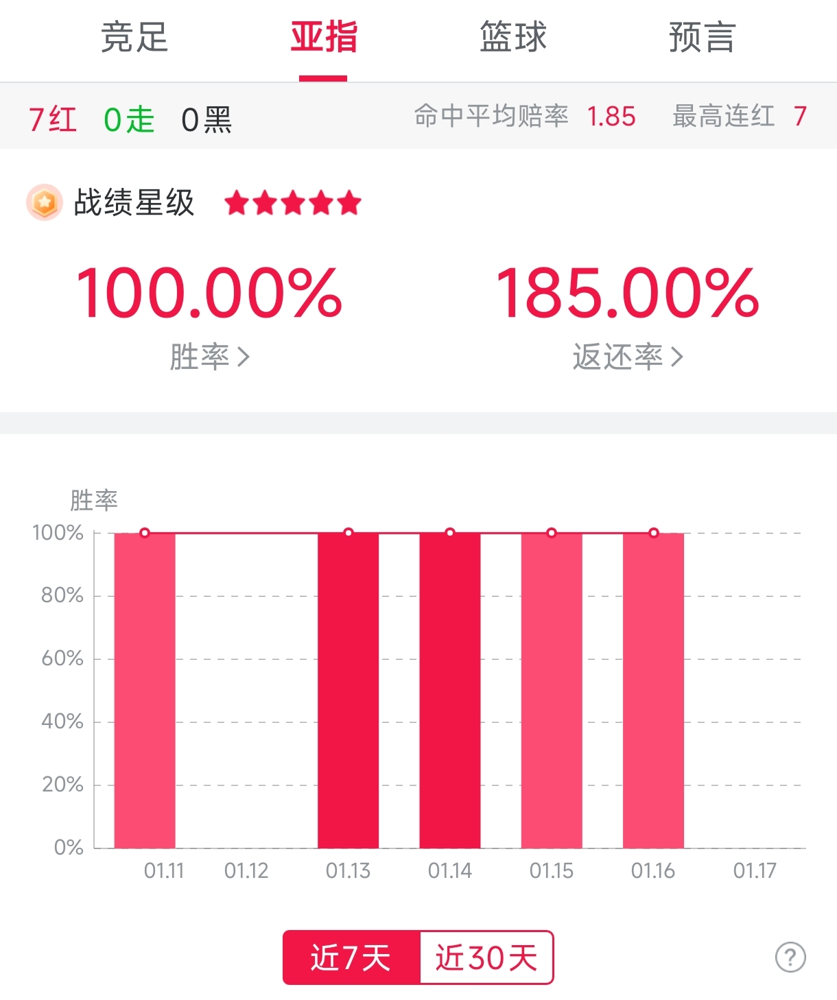 恭喜用户“哶老财 ”亚指8中7,近期亚指7连红,返还率高达185%,状态正佳。“哶老财 ”在今天公推一场英议南联赛:达根汉姆vs萨里斯贝利,感兴趣可以参考一下。