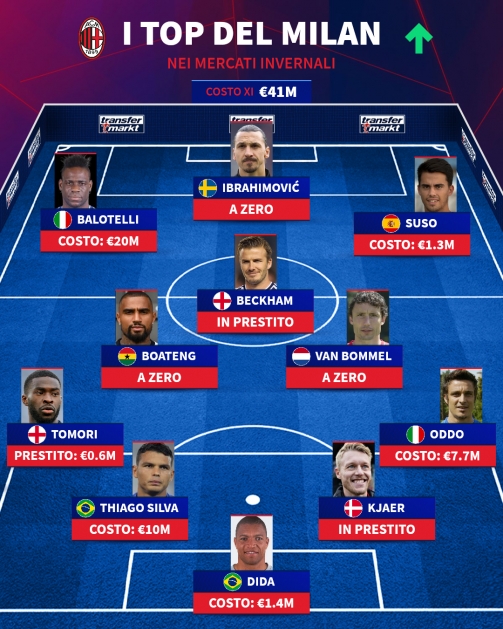 2026冬季转会正在进行,德国转会市场网站盘点了米兰队史冬窗最佳引援阵容,其中伊布领衔,贝克汉姆等球星在列,总转会费4100万欧元。
