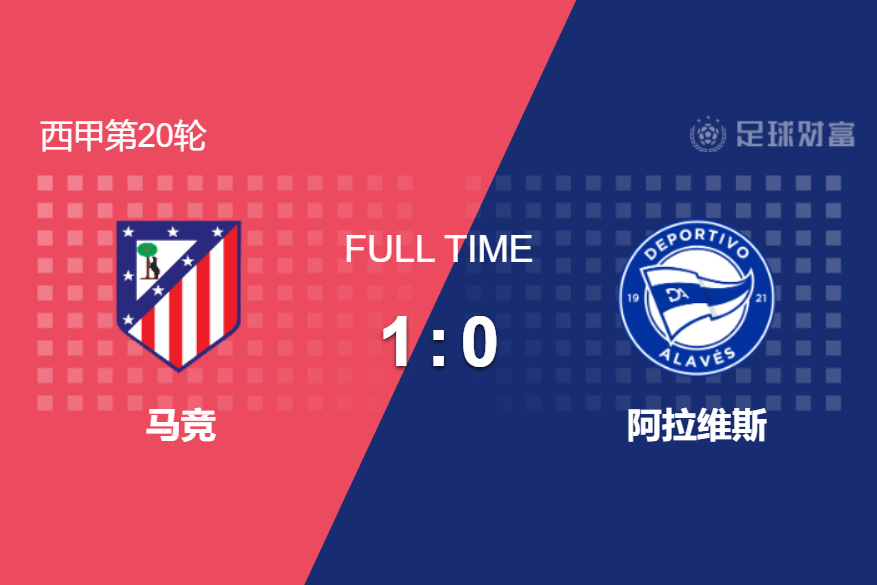 最终全场比赛结束,马竞主场1-0击败阿拉维斯。