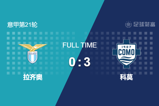最终全场比赛结束,科莫客场3-0完胜拉齐奥。