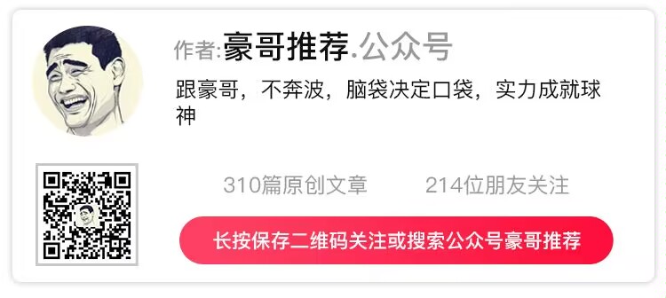 想获取更多精彩赛事,微信搜索公众号关注【豪哥推荐】