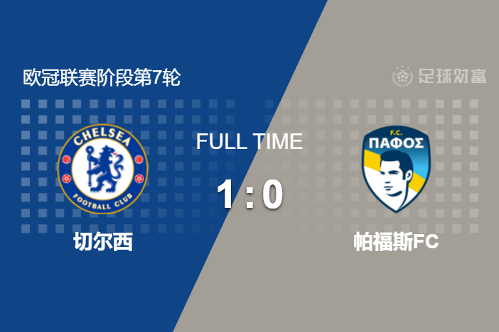 最终全场比赛结束,切尔西主场1-0小胜帕福斯。