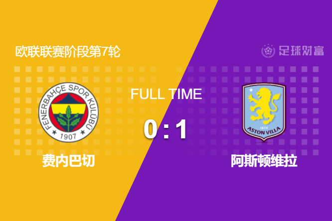 最终全场比赛结束,维拉客场1-0击败费内巴切,高居欧联积分榜第2位。