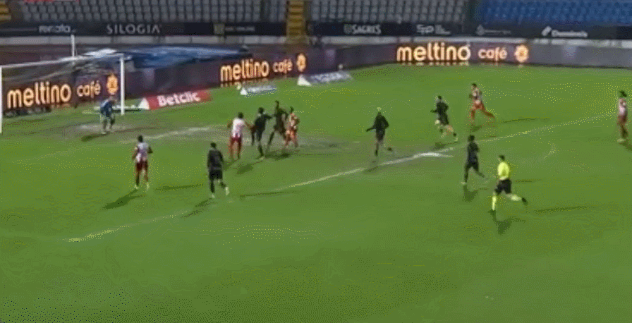 第75分钟,阿维什镇扳回一球!阿卜杜·孔特禁区内放倒蒂亚戈·莫赖斯,主裁判吹罚点球,内内主罚命中,3-1!!