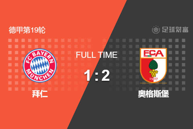最终全场比赛结束,奥格斯堡2-1力克拜仁,送给拜仁本赛季德甲首败。