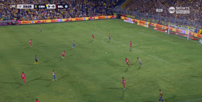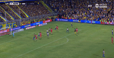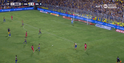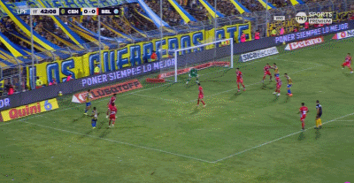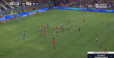第45+3分钟,贝拉斯克斯禁区后点防守时踩到迪马利亚脚面,主裁判判罚点球,随后迪马利亚亲自操刀命中,罗萨里奥中央1-0。