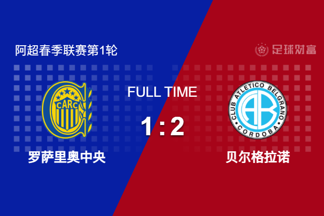最终全场比赛结束,罗萨里奥中央主场1-2不敌贝尔格拉诺。