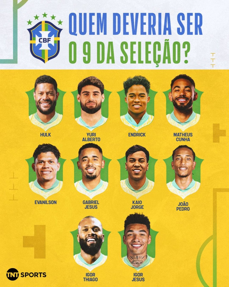 近日,外媒TNT体育列出了十位可能出任中锋的巴西球员,他们之中将产生2026年世界杯巴西新9号。