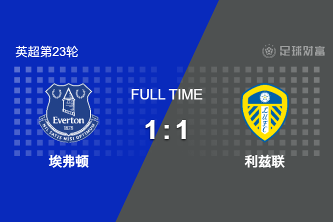 最终全场比赛结束,埃弗顿主场1-1战平利兹联。